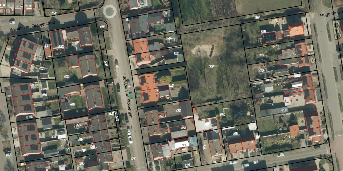 Gebruik de zoekbalk of klik op een perceel om informatie over het perceel te bekijken.