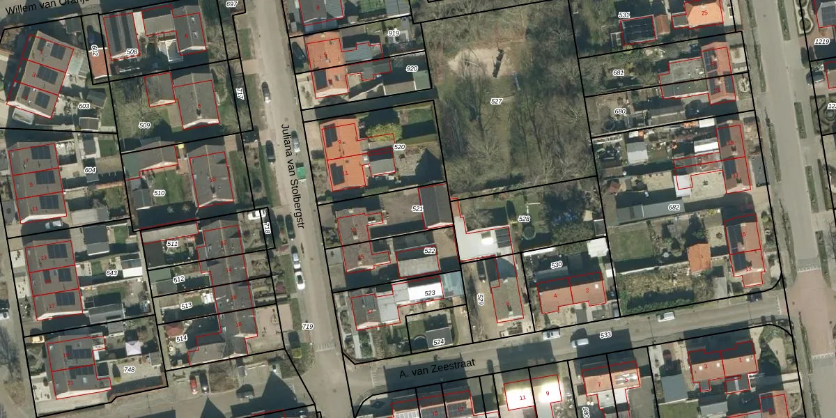 Gebruik de zoekbalk of klik op een perceel om informatie over het perceel te bekijken.