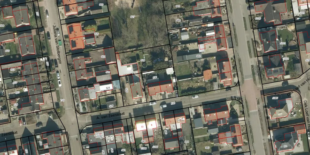 Gebruik de zoekbalk of klik op een perceel om informatie over het perceel te bekijken.