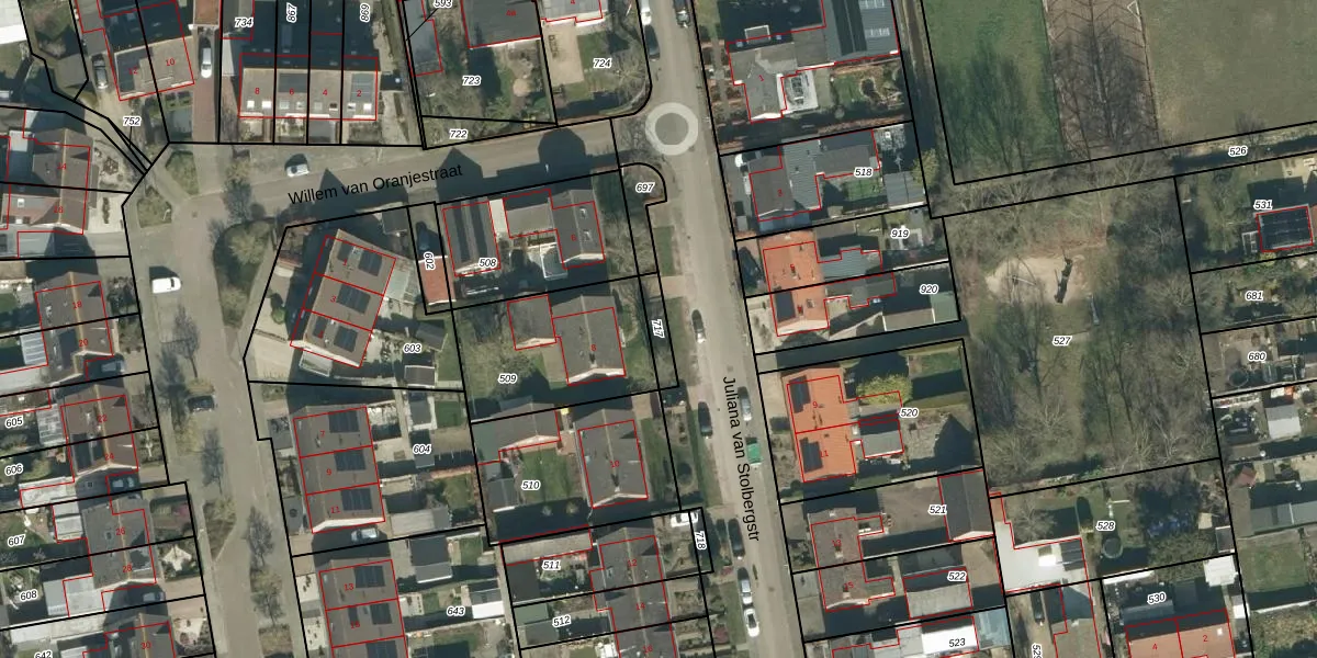 Gebruik de zoekbalk of klik op een perceel om informatie over het perceel te bekijken.