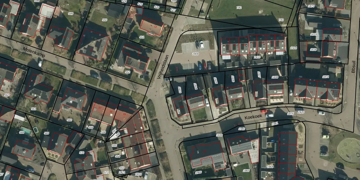 Gebruik de zoekbalk of klik op een perceel om informatie over het perceel te bekijken.