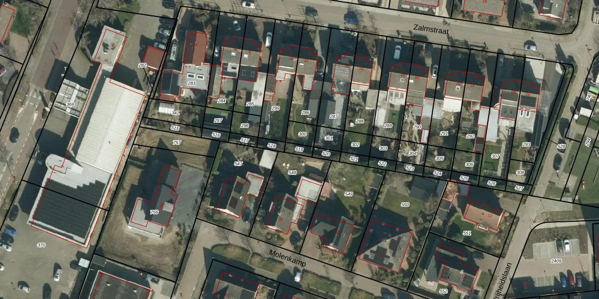 Gebruik de zoekbalk of klik op een perceel om informatie over het perceel te bekijken.