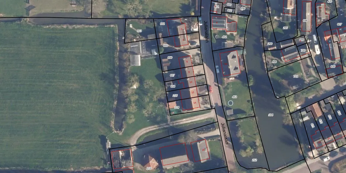 Gebruik de zoekbalk of klik op een perceel om informatie over het perceel te bekijken.
