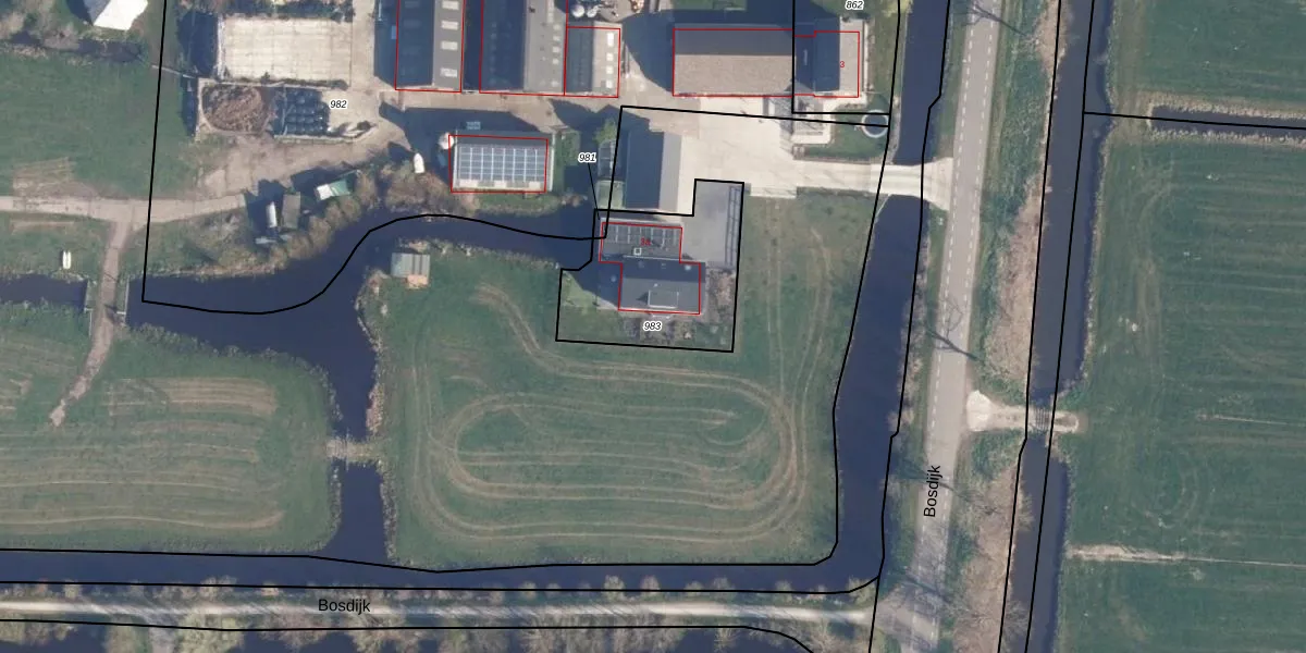 Gebruik de zoekbalk of klik op een perceel om informatie over het perceel te bekijken.