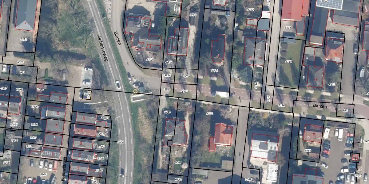 Gebruik de zoekbalk of klik op een perceel om informatie over het perceel te bekijken.