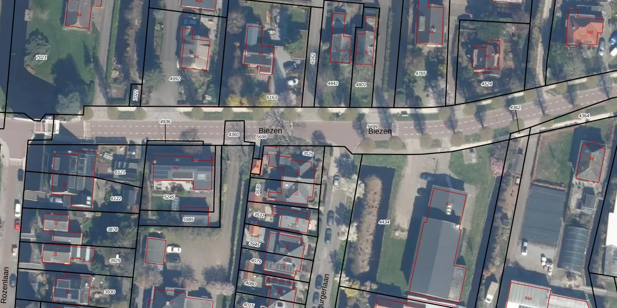 Gebruik de zoekbalk of klik op een perceel om informatie over het perceel te bekijken.