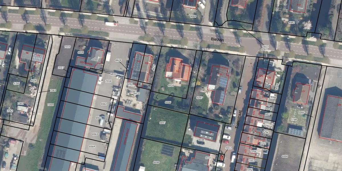 Gebruik de zoekbalk of klik op een perceel om informatie over het perceel te bekijken.
