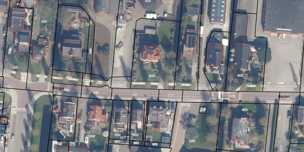 Gebruik de zoekbalk of klik op een perceel om informatie over het perceel te bekijken.