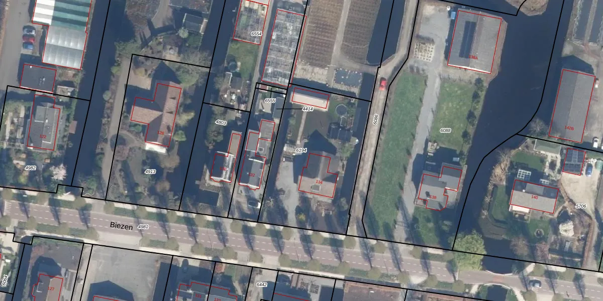 Gebruik de zoekbalk of klik op een perceel om informatie over het perceel te bekijken.