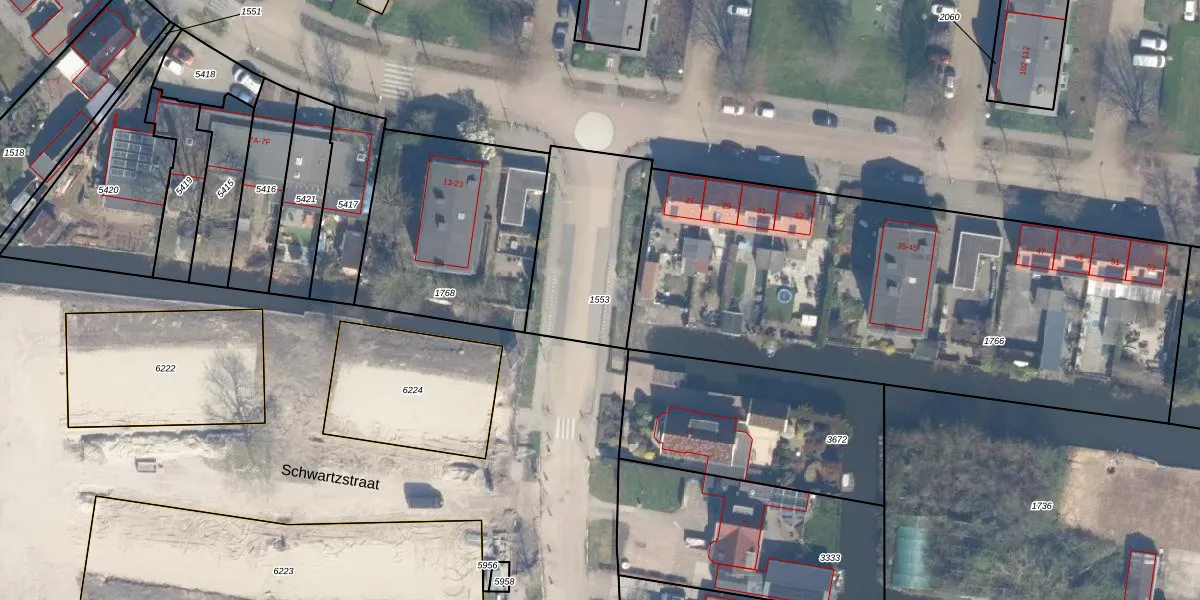 Gebruik de zoekbalk of klik op een perceel om informatie over het perceel te bekijken.