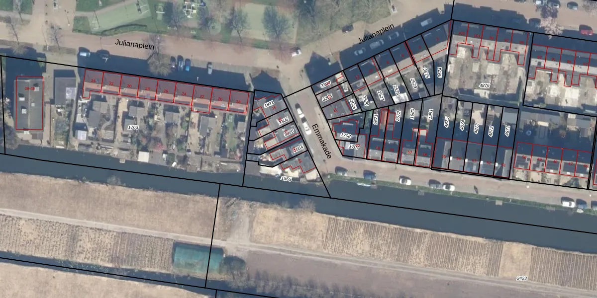 Gebruik de zoekbalk of klik op een perceel om informatie over het perceel te bekijken.
