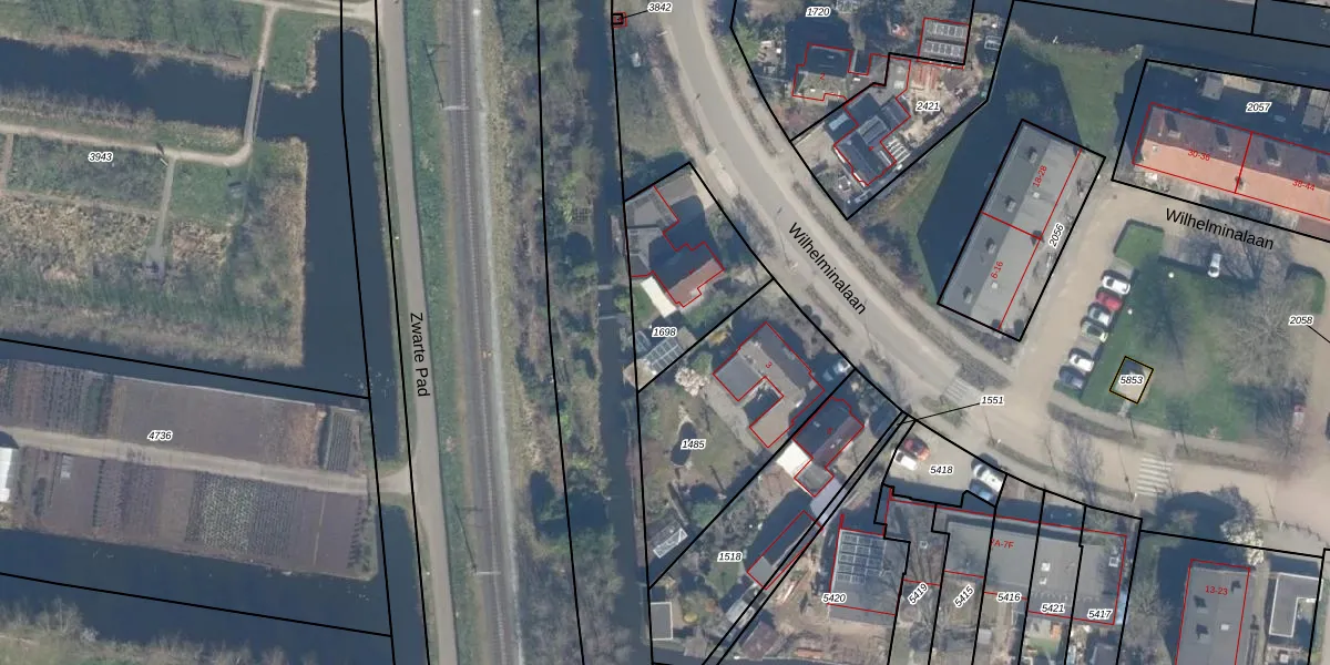 Gebruik de zoekbalk of klik op een perceel om informatie over het perceel te bekijken.