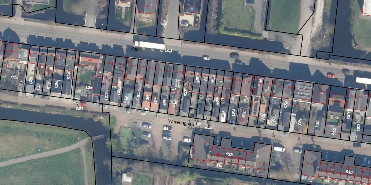 Gebruik de zoekbalk of klik op een perceel om informatie over het perceel te bekijken.