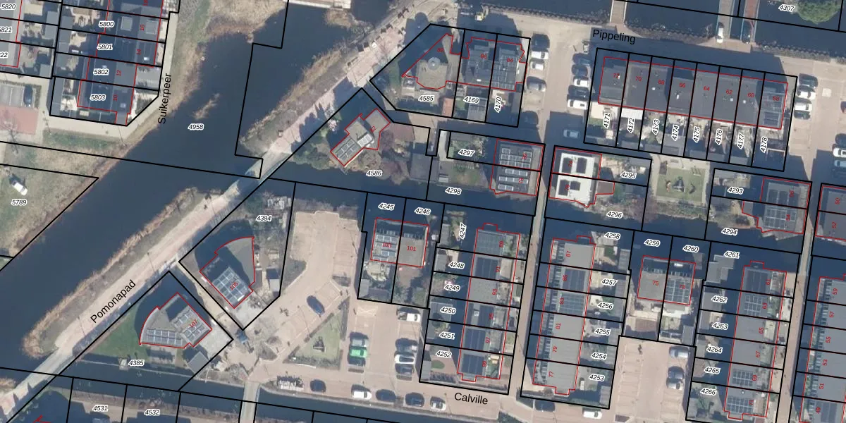 Gebruik de zoekbalk of klik op een perceel om informatie over het perceel te bekijken.