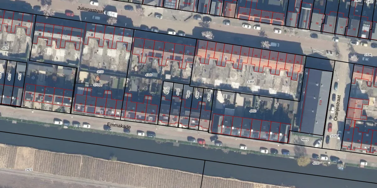 Gebruik de zoekbalk of klik op een perceel om informatie over het perceel te bekijken.