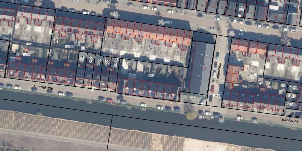Gebruik de zoekbalk of klik op een perceel om informatie over het perceel te bekijken.