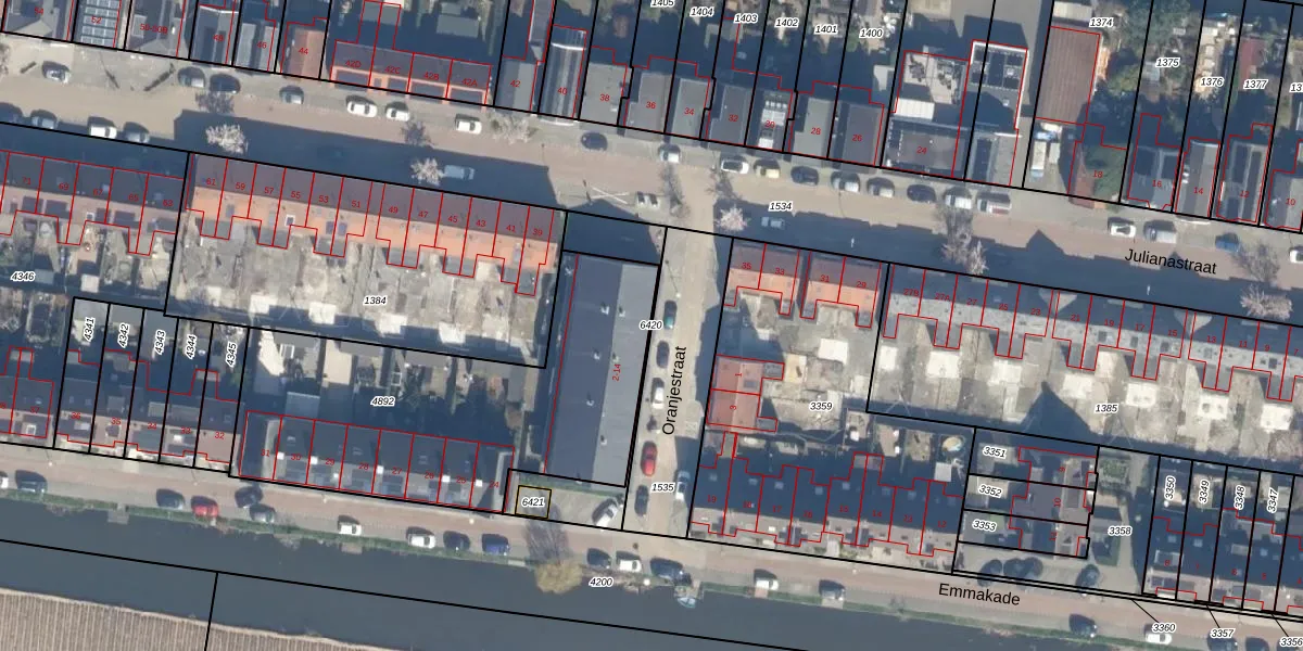 Gebruik de zoekbalk of klik op een perceel om informatie over het perceel te bekijken.