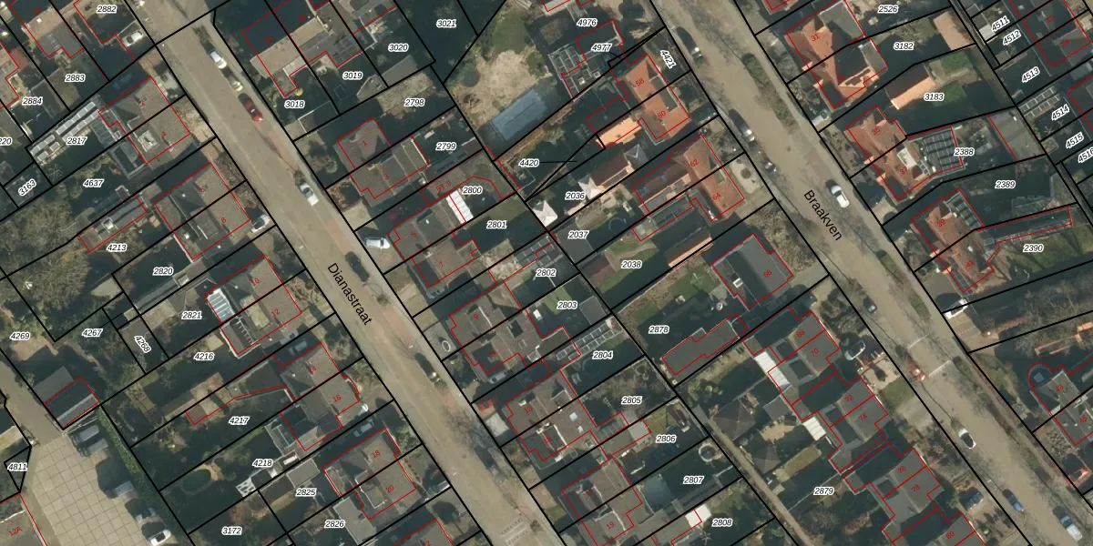 Gebruik de zoekbalk of klik op een perceel om informatie over het perceel te bekijken.