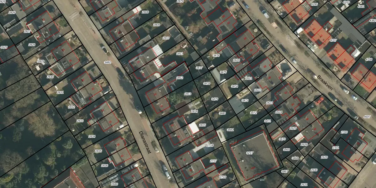 Gebruik de zoekbalk of klik op een perceel om informatie over het perceel te bekijken.