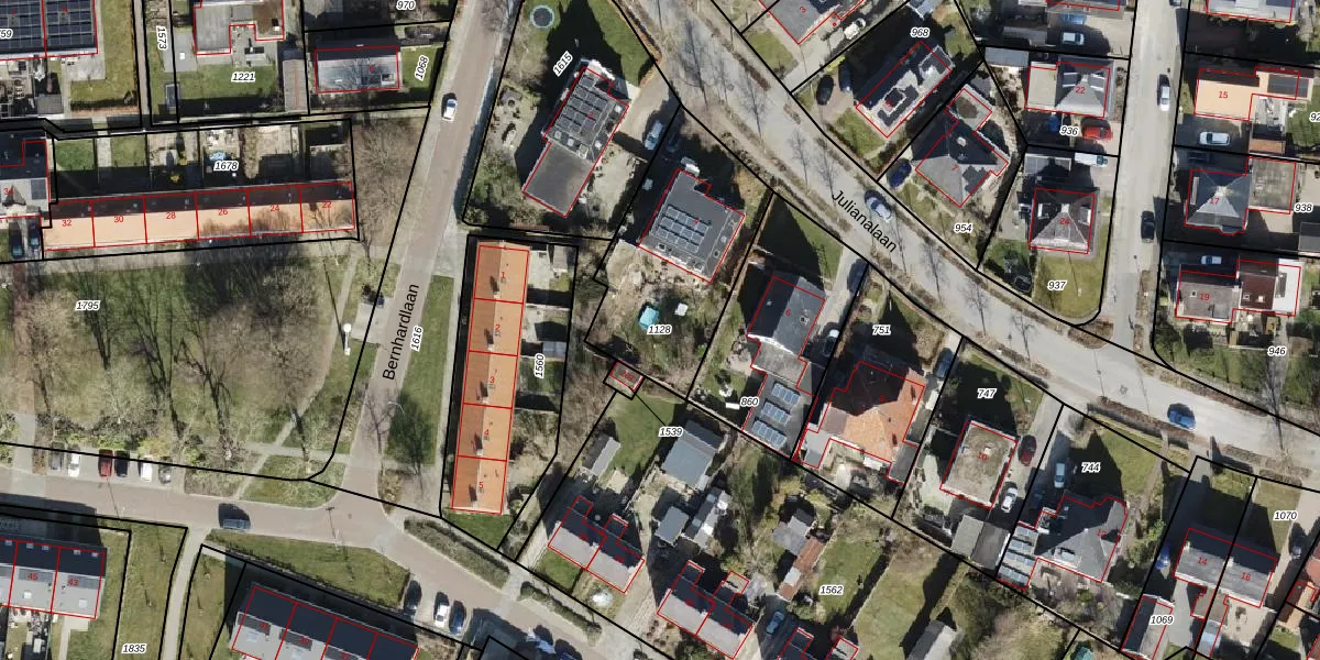 Gebruik de zoekbalk of klik op een perceel om informatie over het perceel te bekijken.