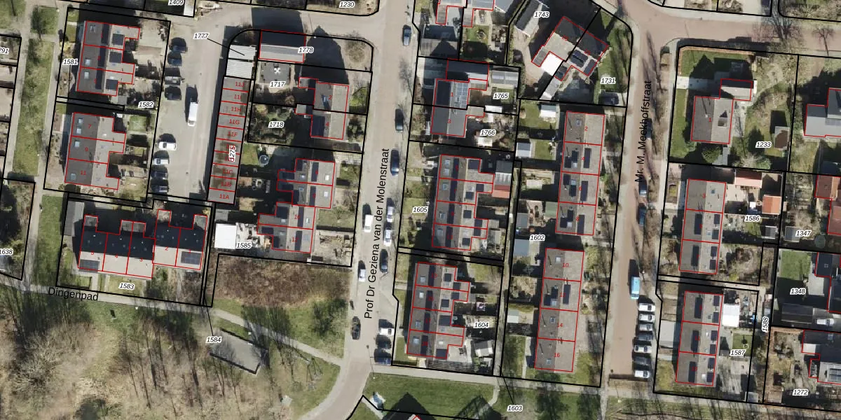 Gebruik de zoekbalk of klik op een perceel om informatie over het perceel te bekijken.