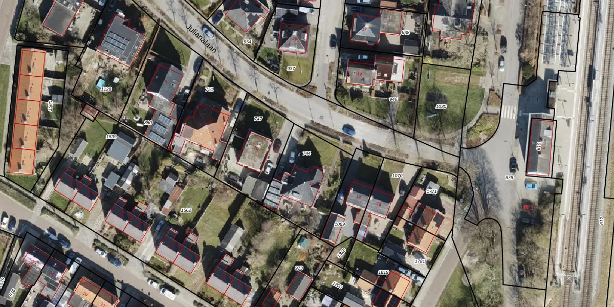 Gebruik de zoekbalk of klik op een perceel om informatie over het perceel te bekijken.