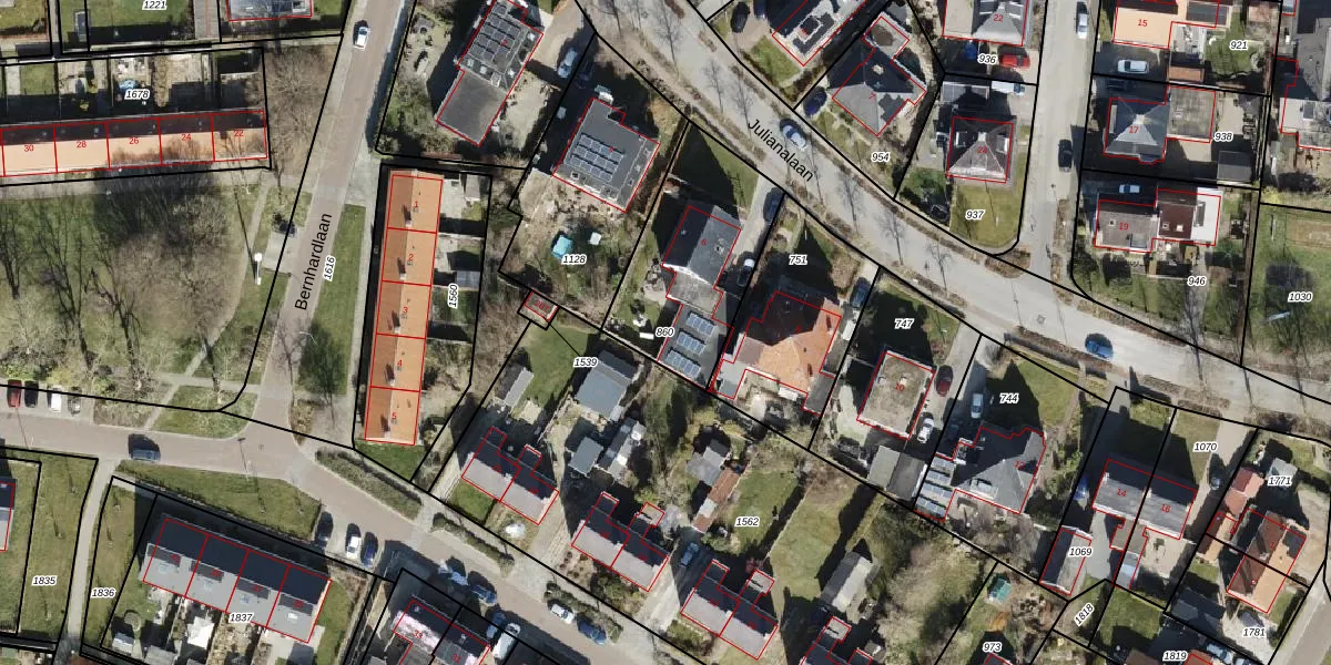 Gebruik de zoekbalk of klik op een perceel om informatie over het perceel te bekijken.