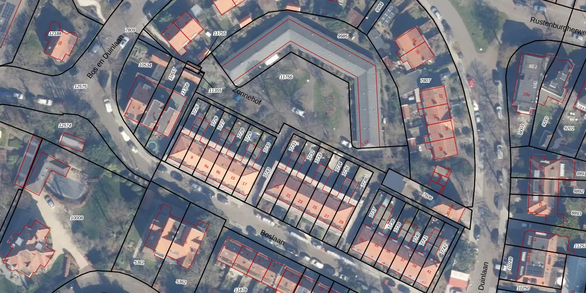 Gebruik de zoekbalk of klik op een perceel om informatie over het perceel te bekijken.