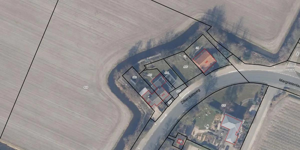 Gebruik de zoekbalk of klik op een perceel om informatie over het perceel te bekijken.