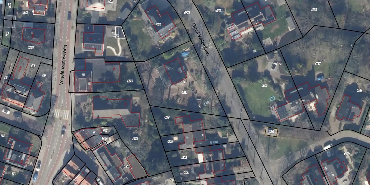 Gebruik de zoekbalk of klik op een perceel om informatie over het perceel te bekijken.