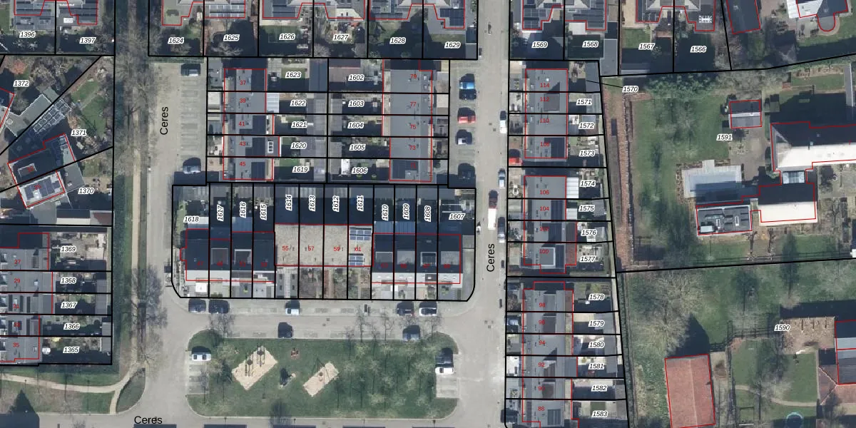 Gebruik de zoekbalk of klik op een perceel om informatie over het perceel te bekijken.