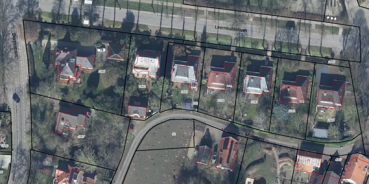 Gebruik de zoekbalk of klik op een perceel om informatie over het perceel te bekijken.