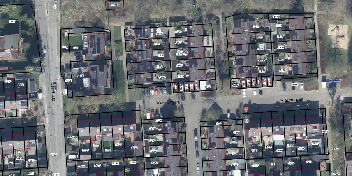 Gebruik de zoekbalk of klik op een perceel om informatie over het perceel te bekijken.