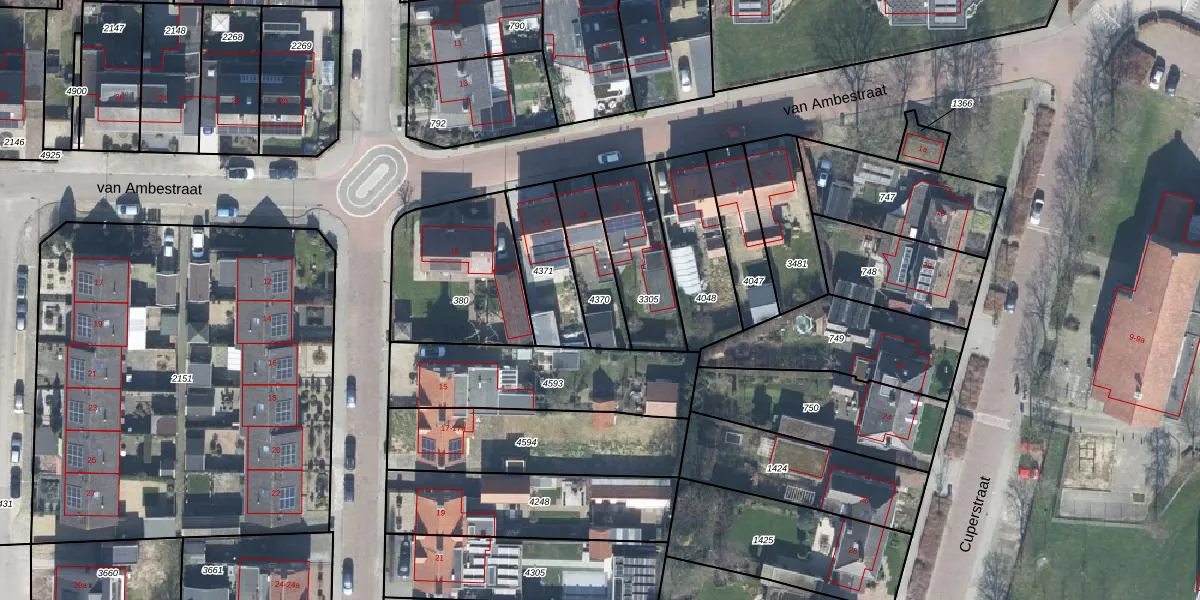 Gebruik de zoekbalk of klik op een perceel om informatie over het perceel te bekijken.