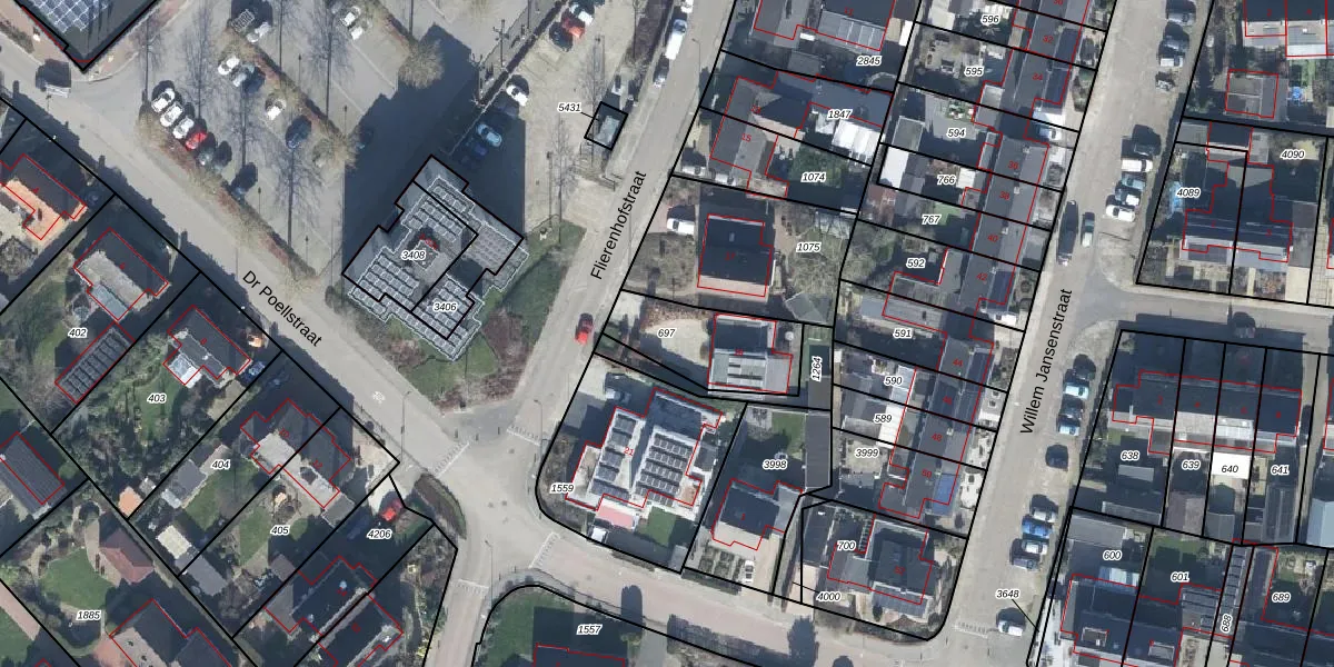 Gebruik de zoekbalk of klik op een perceel om informatie over het perceel te bekijken.