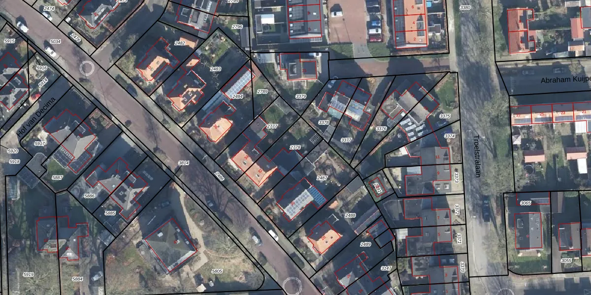 Gebruik de zoekbalk of klik op een perceel om informatie over het perceel te bekijken.