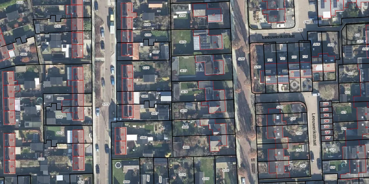 Gebruik de zoekbalk of klik op een perceel om informatie over het perceel te bekijken.