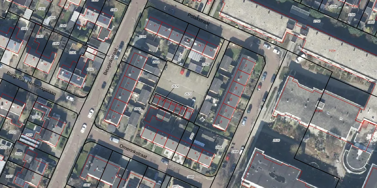 Gebruik de zoekbalk of klik op een perceel om informatie over het perceel te bekijken.
