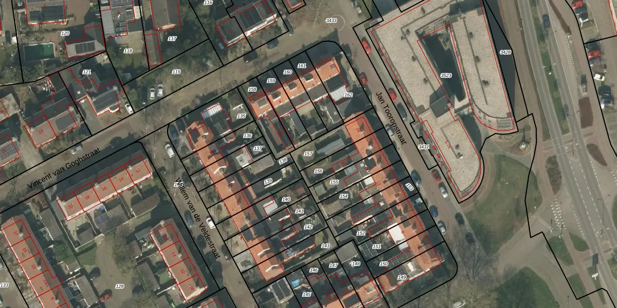 Gebruik de zoekbalk of klik op een perceel om informatie over het perceel te bekijken.