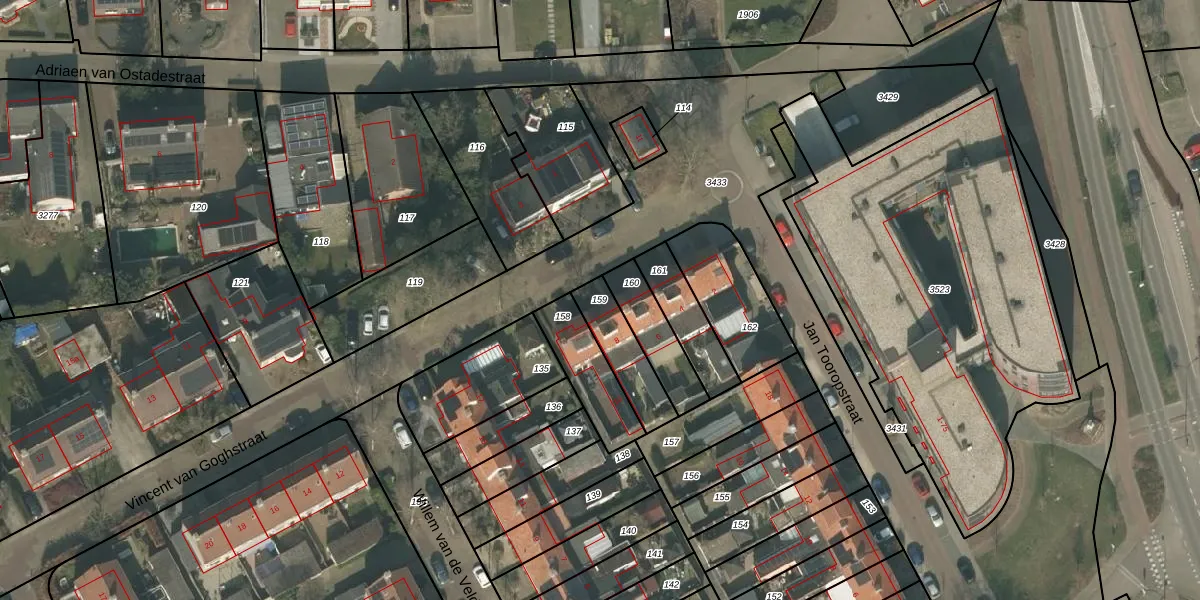 Gebruik de zoekbalk of klik op een perceel om informatie over het perceel te bekijken.