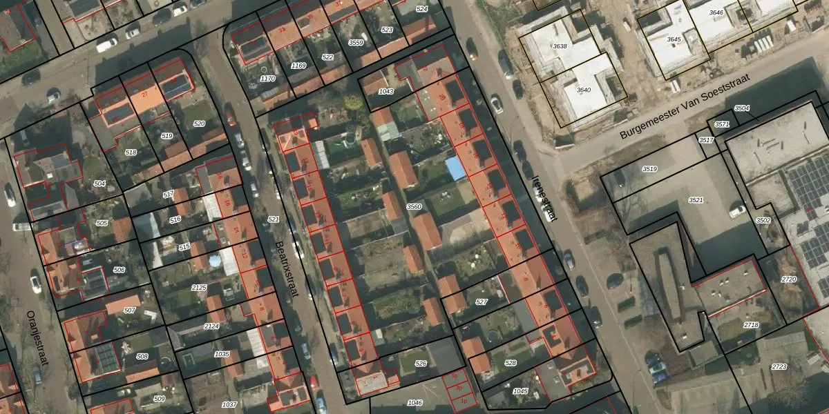 Gebruik de zoekbalk of klik op een perceel om informatie over het perceel te bekijken.