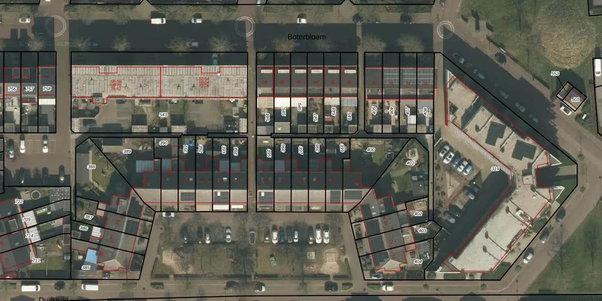 Gebruik de zoekbalk of klik op een perceel om informatie over het perceel te bekijken.