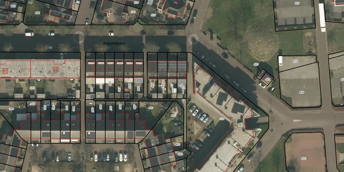 Gebruik de zoekbalk of klik op een perceel om informatie over het perceel te bekijken.