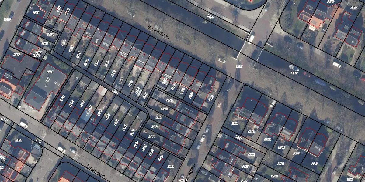 Gebruik de zoekbalk of klik op een perceel om informatie over het perceel te bekijken.