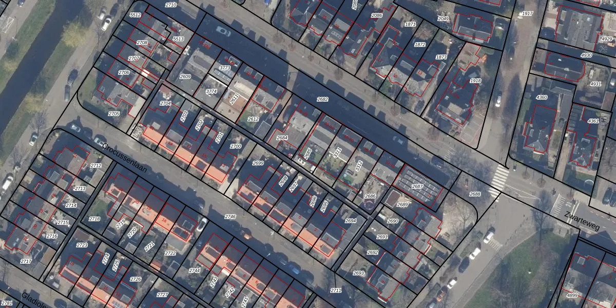 Gebruik de zoekbalk of klik op een perceel om informatie over het perceel te bekijken.