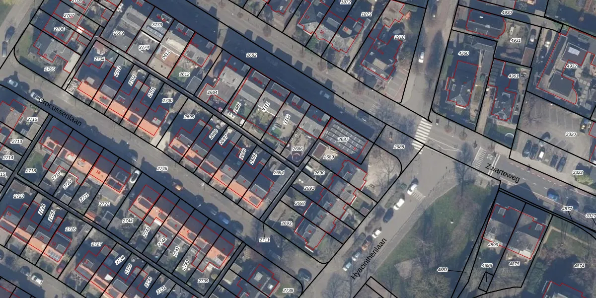 Gebruik de zoekbalk of klik op een perceel om informatie over het perceel te bekijken.