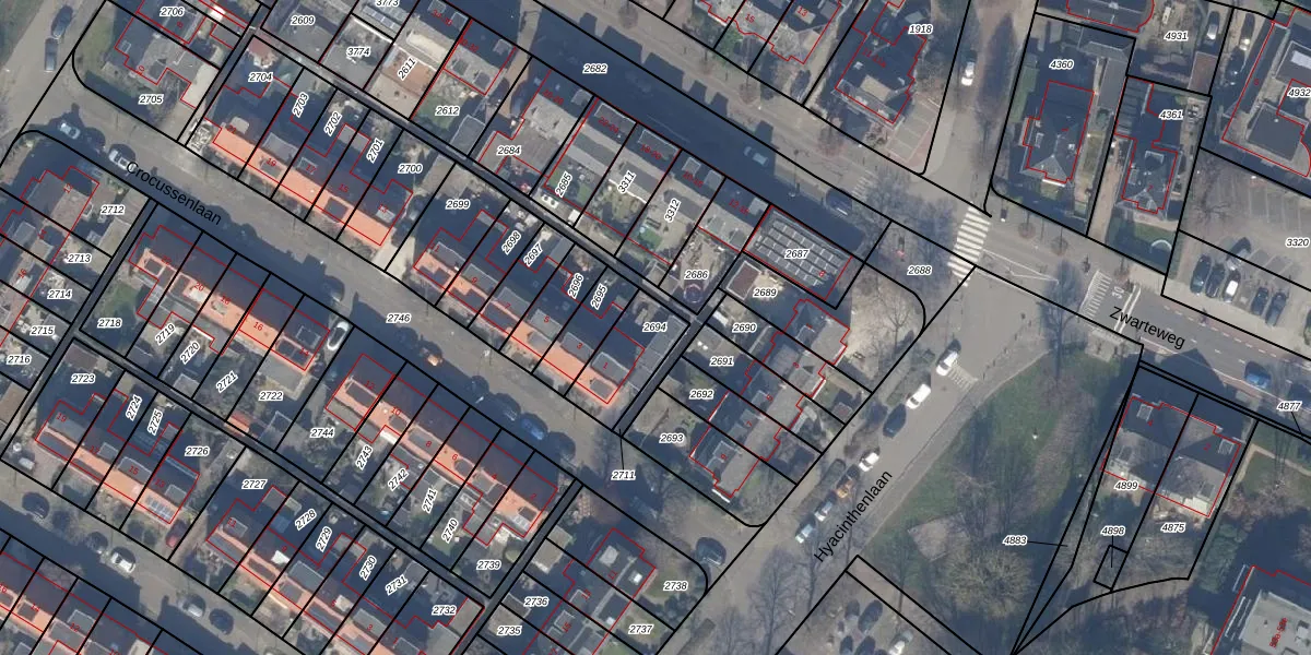 Gebruik de zoekbalk of klik op een perceel om informatie over het perceel te bekijken.