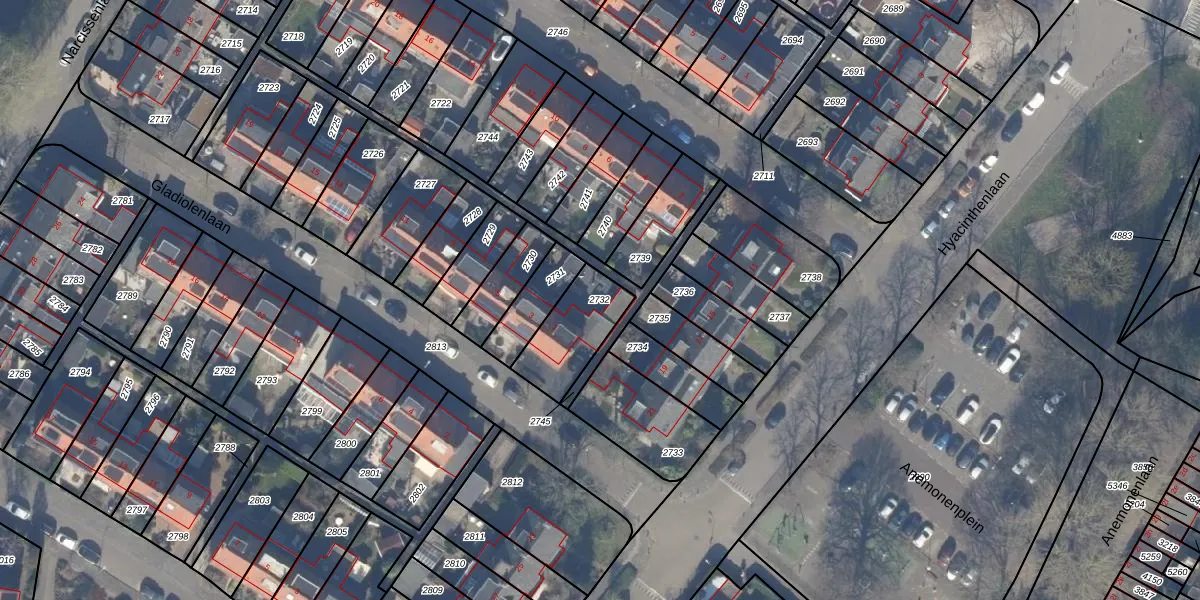 Gebruik de zoekbalk of klik op een perceel om informatie over het perceel te bekijken.