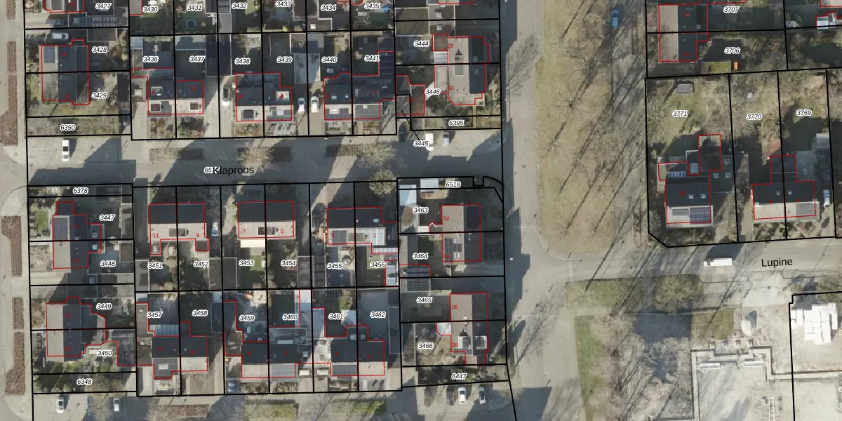 Gebruik de zoekbalk of klik op een perceel om informatie over het perceel te bekijken.