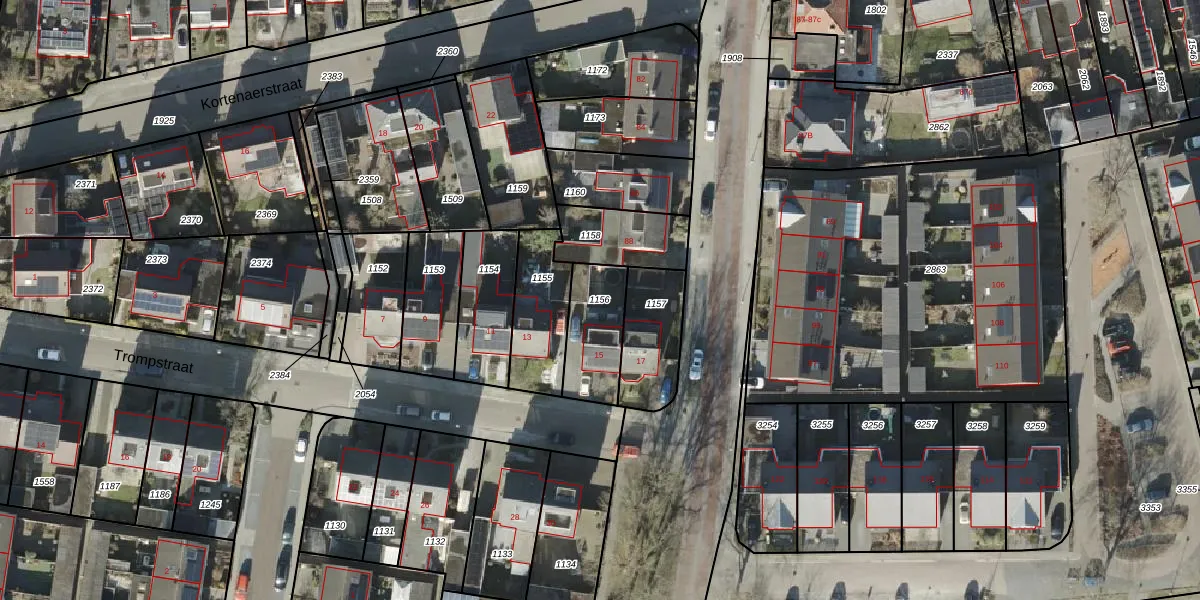 Gebruik de zoekbalk of klik op een perceel om informatie over het perceel te bekijken.